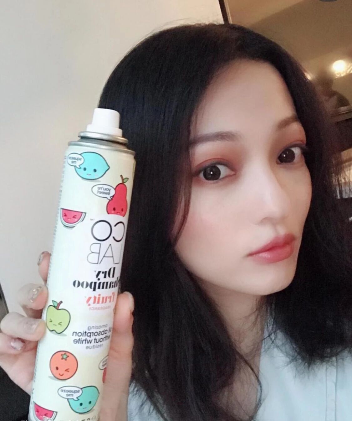 张韶涵用的这款是来自英国的COLAB,这款干发喷雾喷出来是透明的水雾,不会让头发变得白花花的~