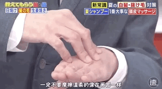 Tips1:按摩的时是手指第二关节用力,用按摩桃子的力度,像画圆一样去按摩,从下至上一直按摩到头顶。