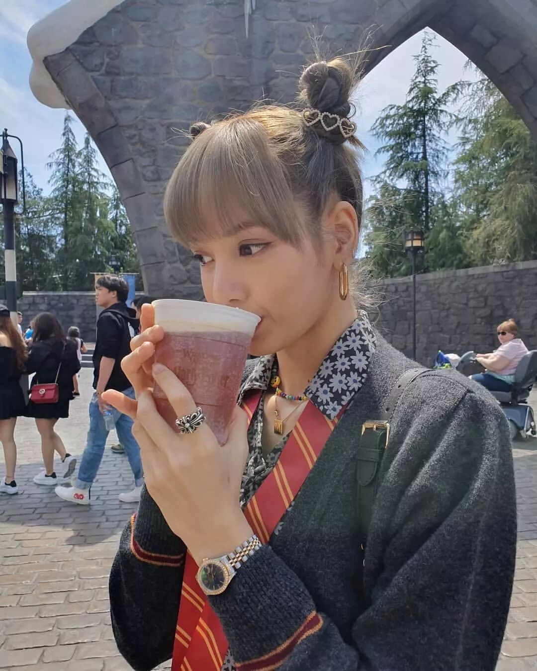 Lisa虽然脸很小,但是脸型是短圆脸,留长两侧的刘海能减少脸宽,脸部线条看起来也更精致了。