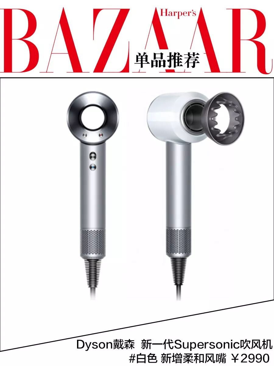 新一代戴森Supersonic™吹风机,配合全新研发柔和风嘴和新一代造型风嘴及扩散风嘴,快速干发,无需过高温度,呵护细软发质和娇嫩头皮,同时防止高温引起的染发褪色,从而保护头发健康光泽。