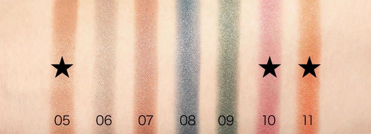 产品精简全面,其中全新五色眼影盘的压纹呈现了一个眼睛的图案,很有神秘色彩。