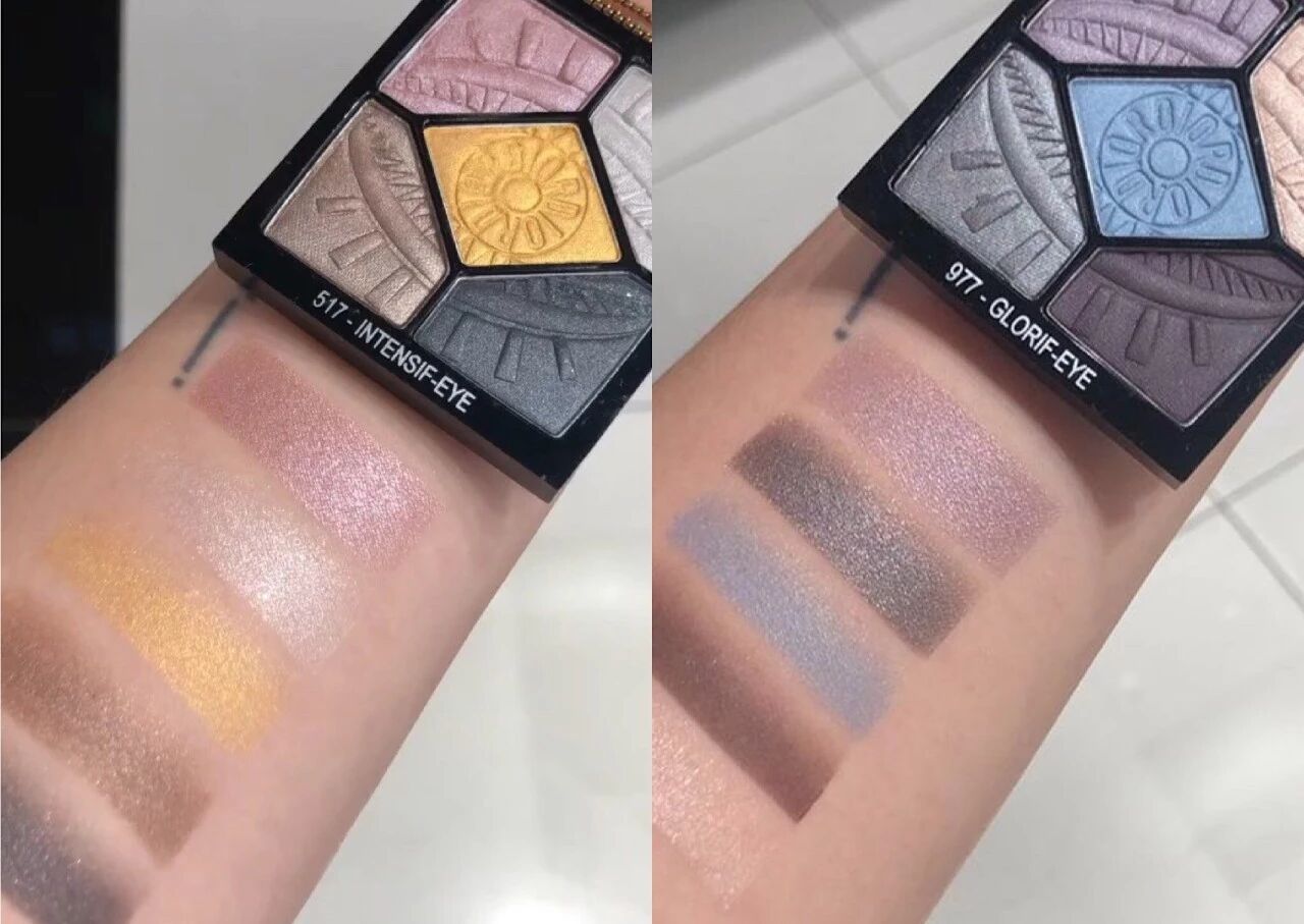 2个色号都是冷色系,#977 Glorif-Eye用中间的蓝灰色完美平衡了烟熏紫和灰色系组合,而#517 Intensif-Eye则更偏温暖和谐。