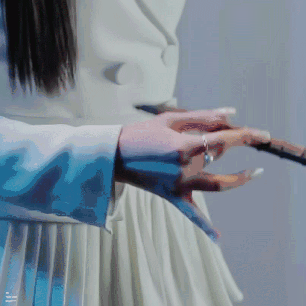 修建成尖圆甲型,显得手指更加修长,涂上和衣服中相同元素的淡蓝色带银色偏光甲油,简直360度都能闪耀不一样的光泽,和喜欢的人说悄悄话也能让他轻松注意到你精心修饰的美甲。