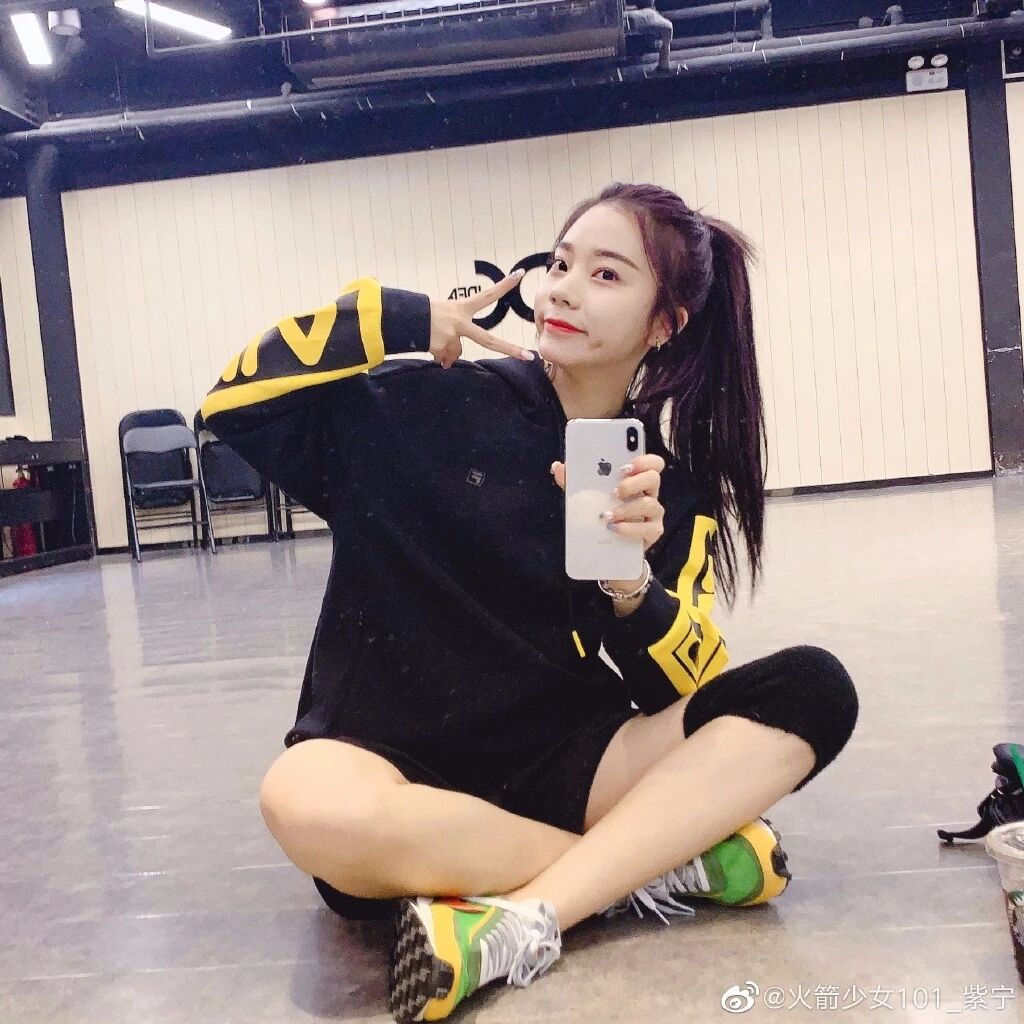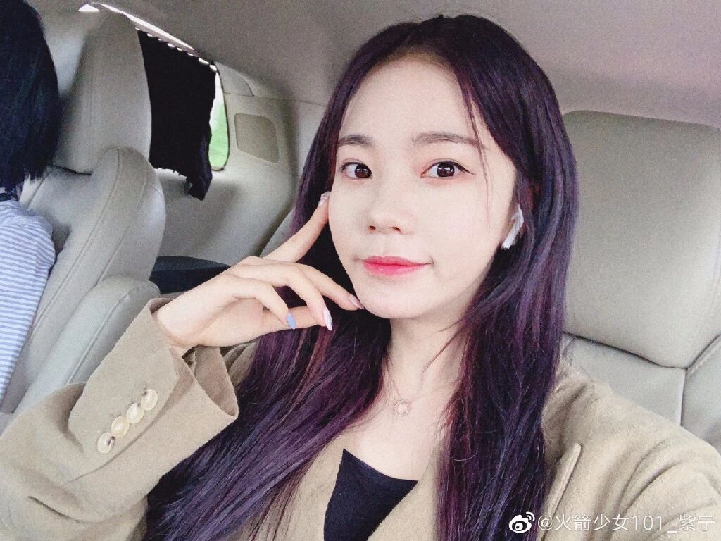 同为火箭少女101的队员,紫宁前段时间也pick了更酷更个性的冷调深紫发色