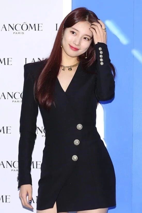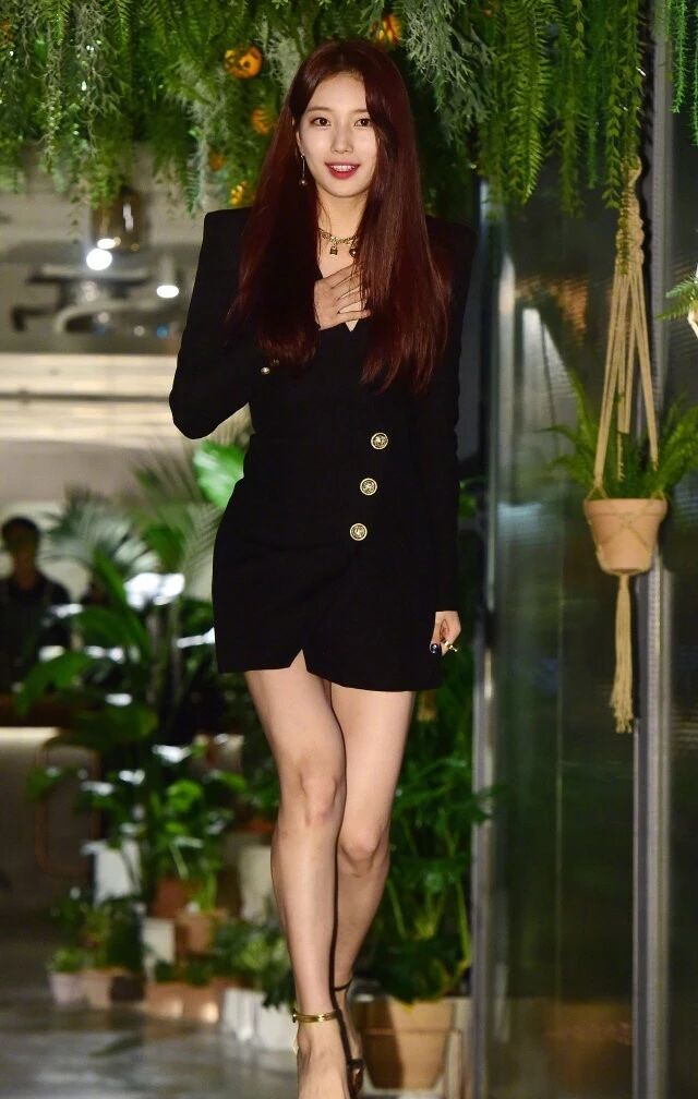 穿了一身酷酷的西装裙配上酒红色长直发的秀智,真的是可A可甜本人了!
