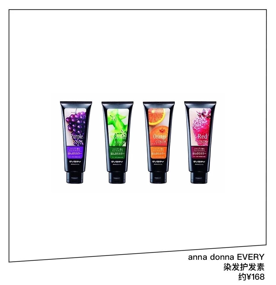 而anna donna EVERY的产品则主打染色护发素,不仅可以当做护发素使用,还可以在头发掉色时把它当成染发膏来涂抹在掉色的地方填补颜色,同样颜色的选择也足够满足你!