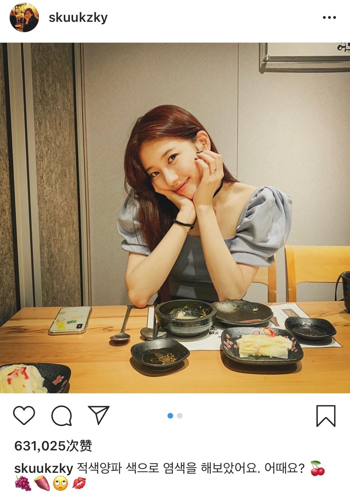 秀智自己也超满意这次的新发色,还在INS上po了生活照配文“我尝试着染了红洋葱色的发色,怎么样?”