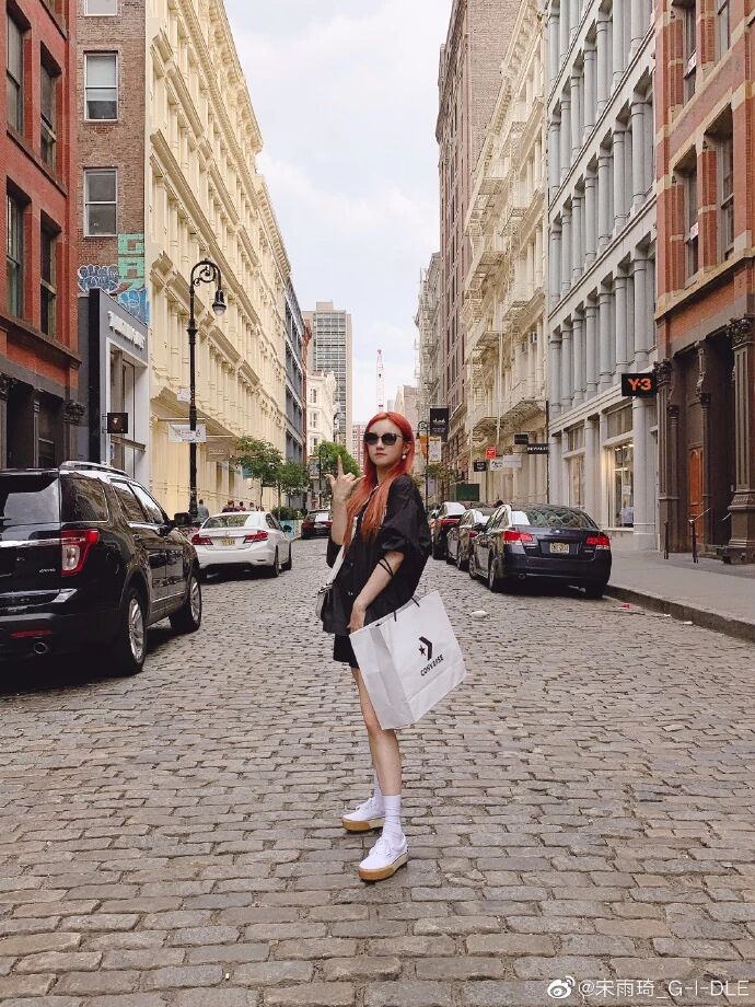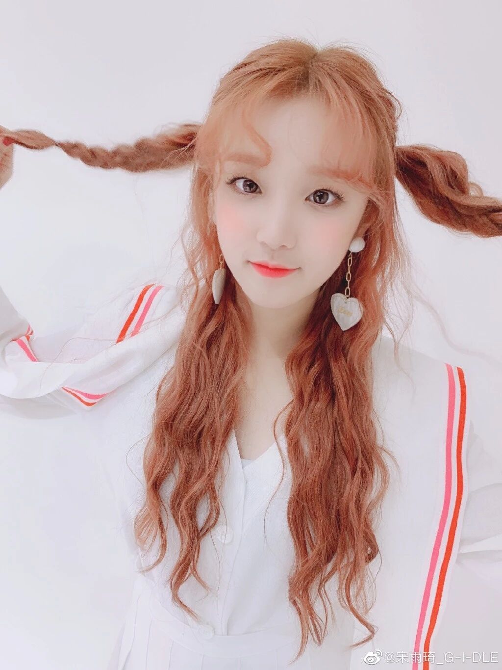 而前段时间,宋雨琦也同样选择了红色系,不过跟秀智、JOY不同,雨琦的头发底色更偏浅发色偏红柚色的粉橙色