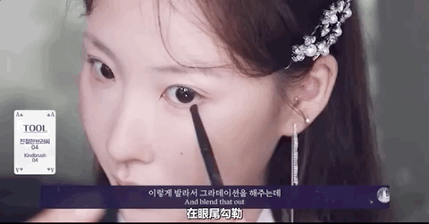 最后用余粉在加深一下下眼尾的部分,满月社长的同款眼妆就画好啦~