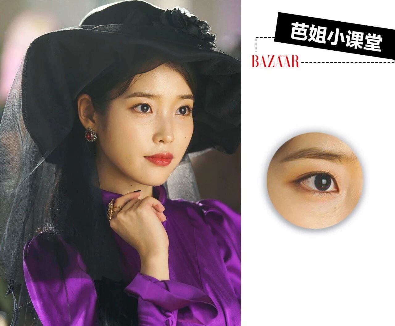 圆圆眼擅长走可爱风的IU,这次为了凸显社长角色的霸气感,放弃了以往习惯拉长眼尾眼线的下垂式狗狗眼