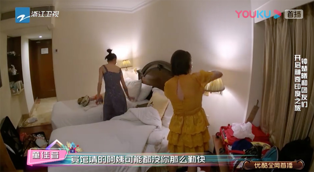 难道钟楚曦在旅行综艺《各位游客请注意》中解锁了“洁癖”技能吗?即使到达酒店已经是夜晚,她依然给酒店进行“大扫除”,不光更换床单,连地板都整个擦了一遍。