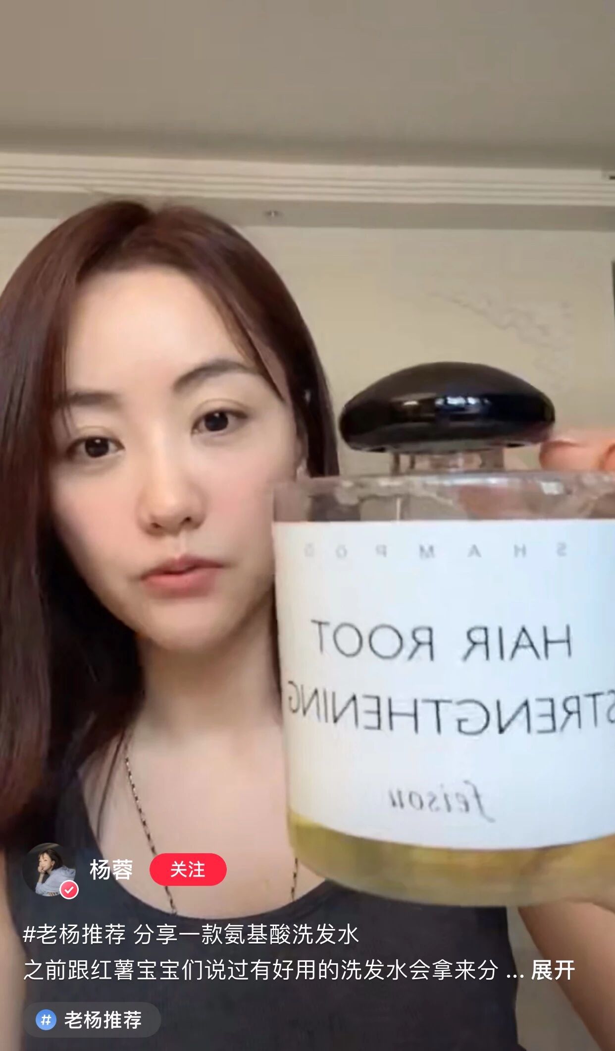 这样一头好看的秀发可不是随随便便就能拥有的,为此芭姐特意去翻了翻杨蓉在社交媒体上的分享,发现她连洗发水都要按成分挑选使用。