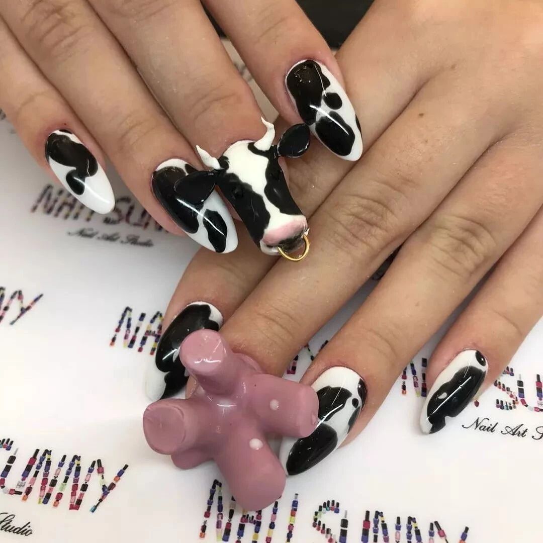 不仅有口红型美甲这样简单的异形美甲,也可以根据做的图案对指甲形状做出调整。