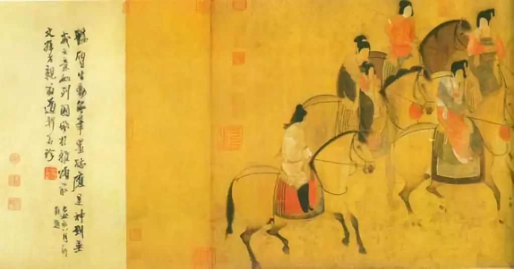 在唐代的中晚期,因为唐德宗的偏爱,京城长安流行坠马髻,就是把头发挽到头顶上做成一簇大髻,然后使它偏向一侧,形成的半散半盘发式,活泼自然,名画《虢国夫人游春图》中就出现了这种发式。这种“半挽秀发半随风”的发式,当下受到了更多年轻新娘的垂青。