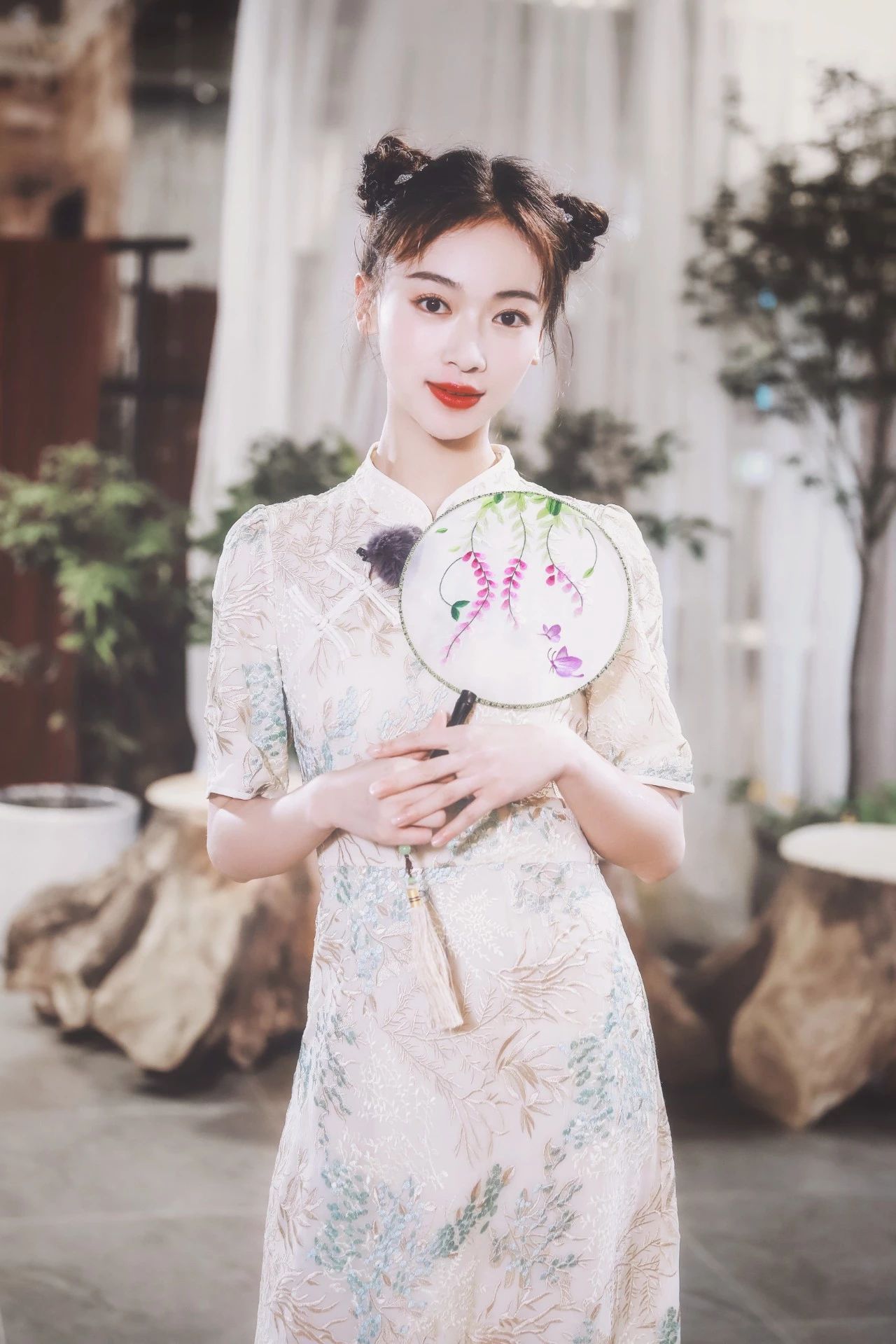陈妍希则用了侧刘海编发,还将头发扎成了低发髻,将她身上小家碧玉的气质完全展现出来。