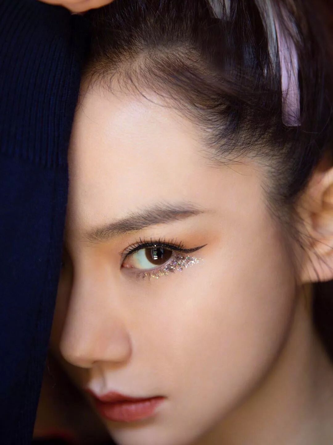徐璐的五官很有量感,真的很适合做彩妆博主。之前教大家“约会星星妆“。