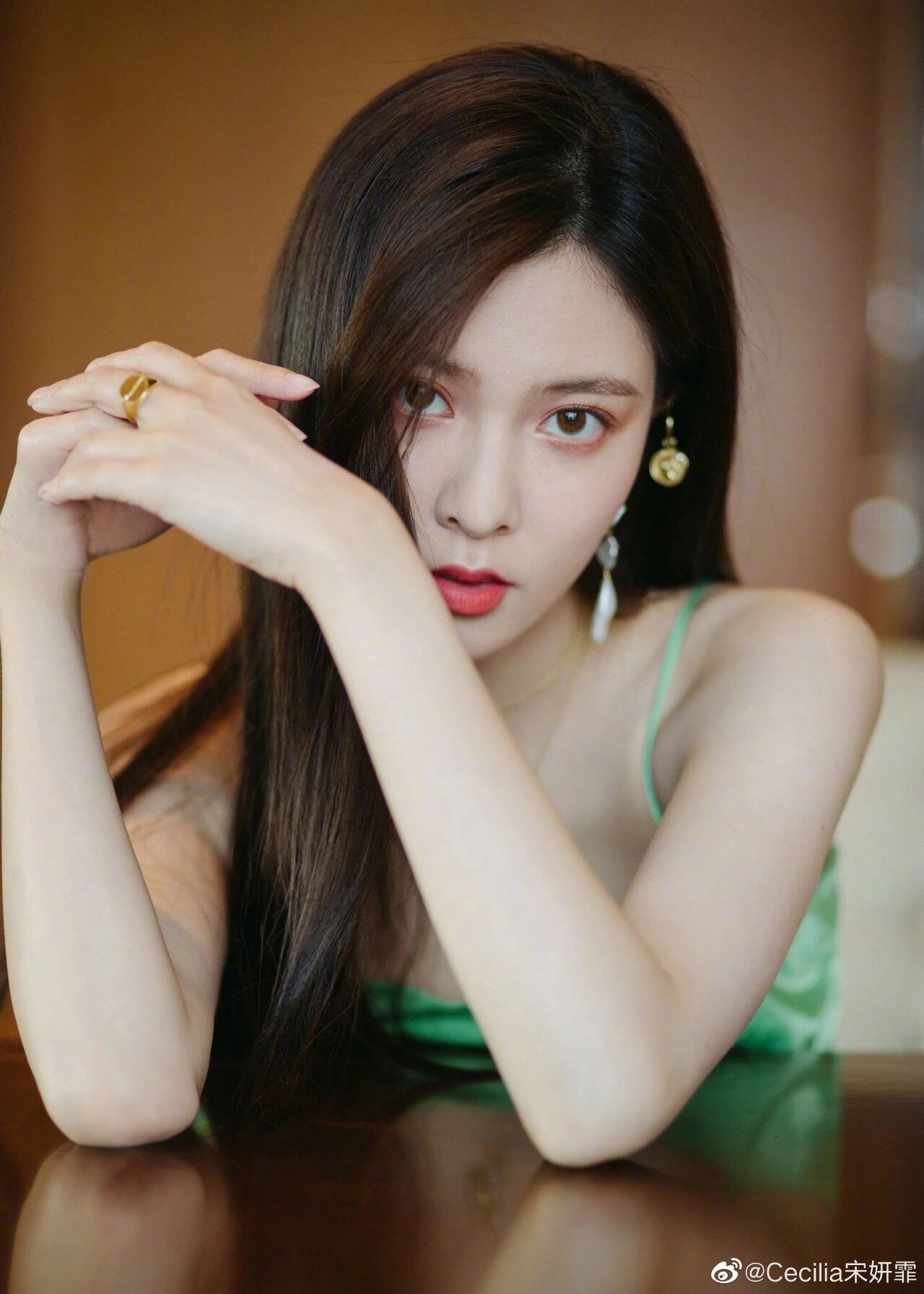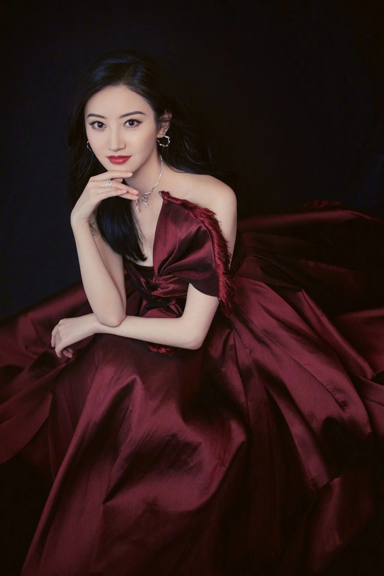 不仅皮肤状态让人眼前一亮,大甜甜的肤色还在车厘子色丝滑礼服的衬托下又白了好几个色号,叫人心生羡慕。