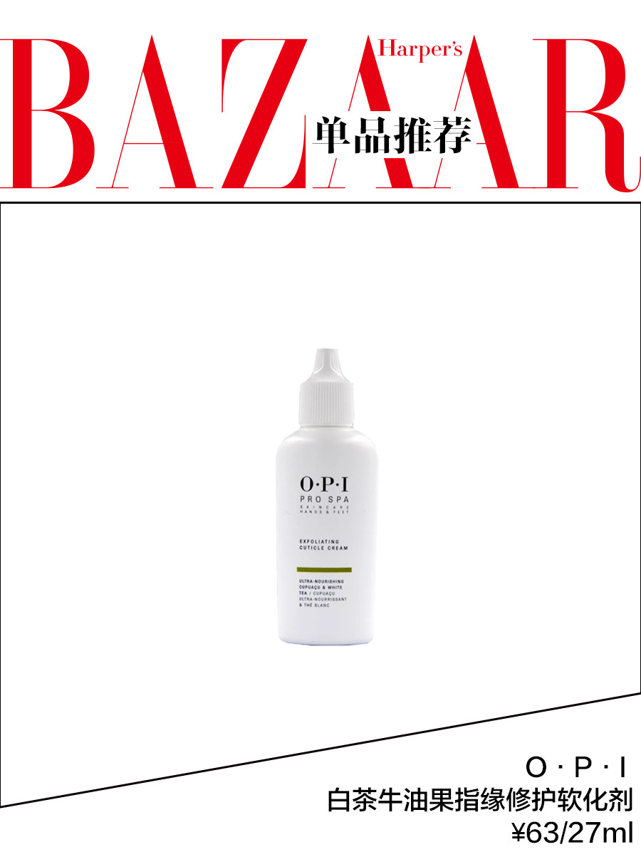 芭姐推荐:O·P·I 软化剂能够轻松软化指甲周围的死皮和角质,然后用指皮钳将推到一起的死皮和角质轻轻修剪掉就可以啦~