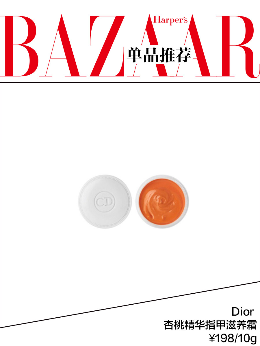 芭姐推荐:Dior 杏桃精华指甲滋养霜区别于常见的油类产品,含有羊毛脂的成分,既能给指甲增加养分又可以增强韧性,加速指甲的生长速度,味道超清香。