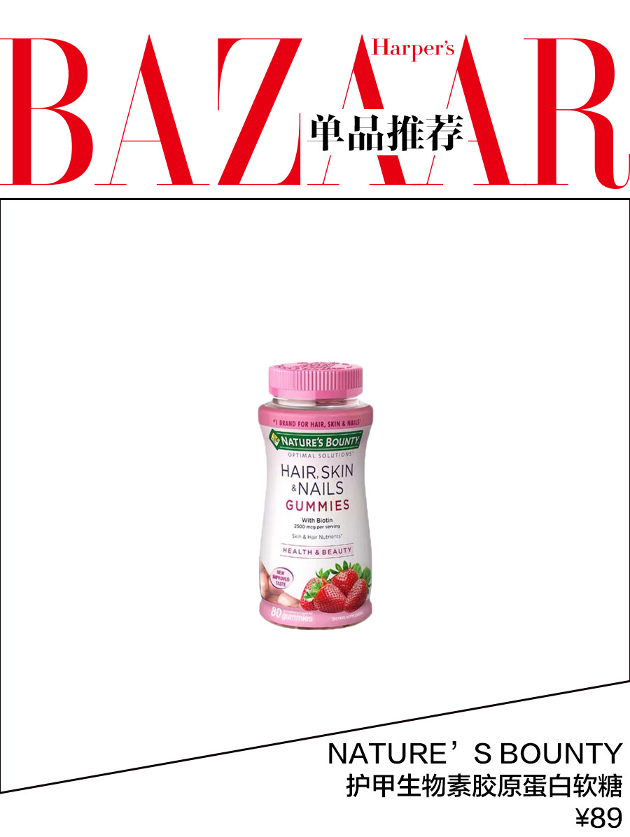 芭姐推荐:NATURE'S BOUNTY 胶原蛋白软糖吃起来像零食一样酸酸甜甜的,丰富的抗氧化剂、维生素E和维生素C把指甲所需的营养都补充到位。