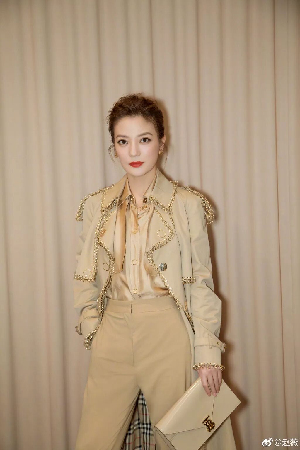 在日常的工作照中,虽然有微微的刘海遮挡但也能看出薇姐画的挑眉,再配上薇姐本身的大眼睛,真的气场十足啦!