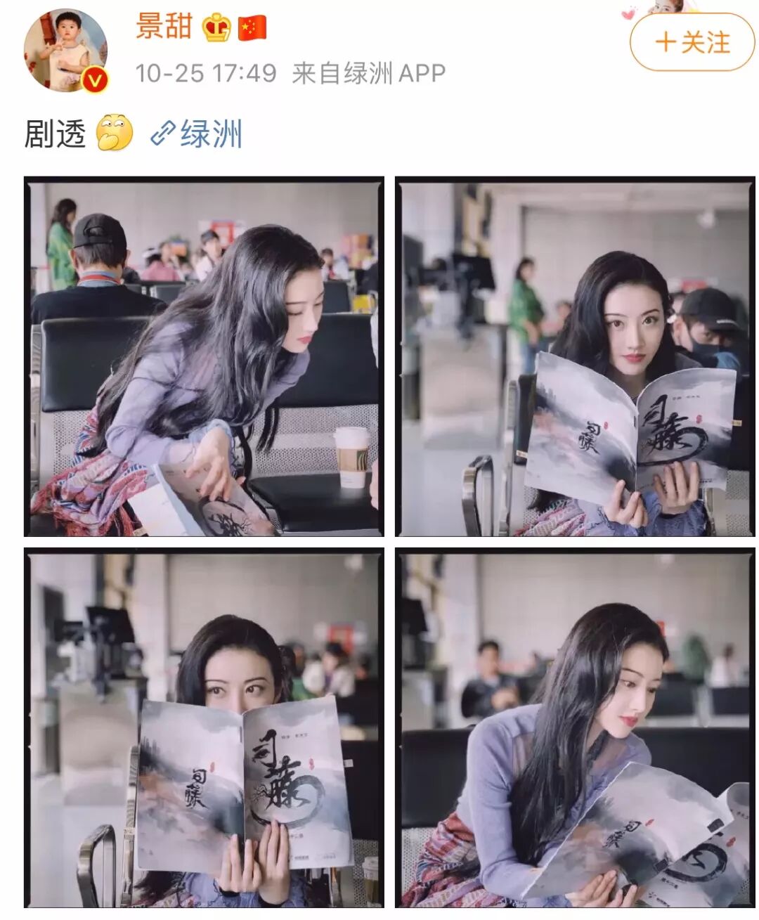 照片中大甜甜手捧剧本认真研读,随随便便的几张抓拍都让网友直呼“仙气十足~”