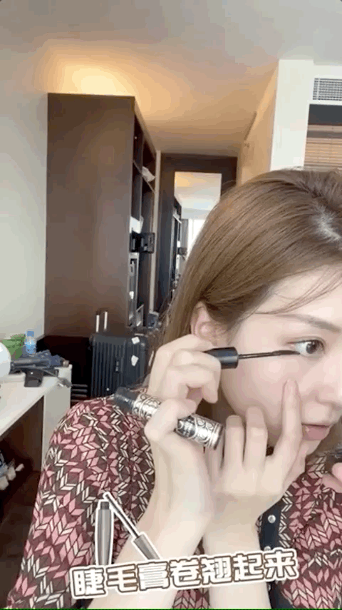 乔欣会用睫毛夹夹住睫毛,接着用一段一段逐渐往上卷曲C字提拉的方式去夹翘睫毛