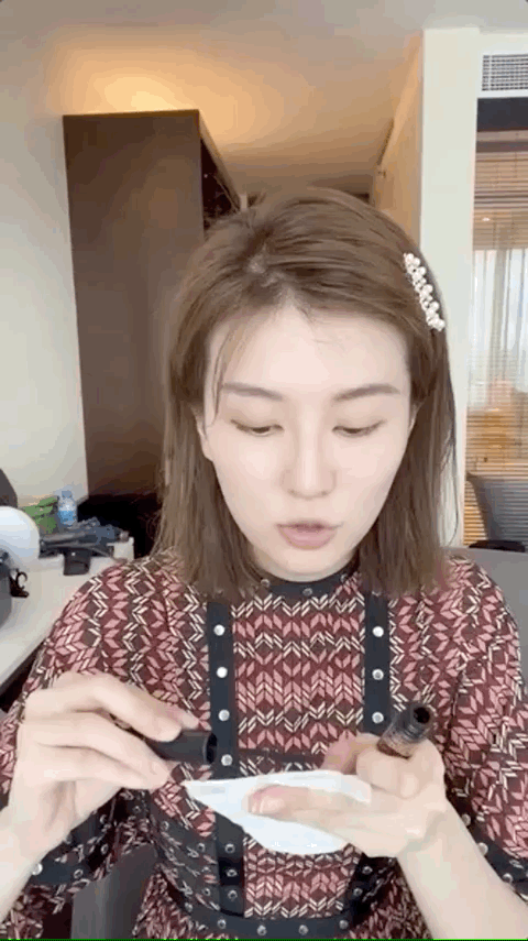 乔欣在使用睫毛膏前会用和化妆师偷学来的技巧——用纸巾擦拭一下多余的膏体