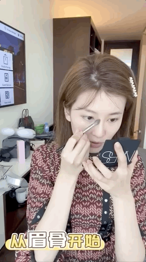 因为乔欣本身也不属于眼窝很凹很立体的长相,所以想要让眼睛看起来更深邃一定要好好运用眼影的晕染来画出更深的结构感