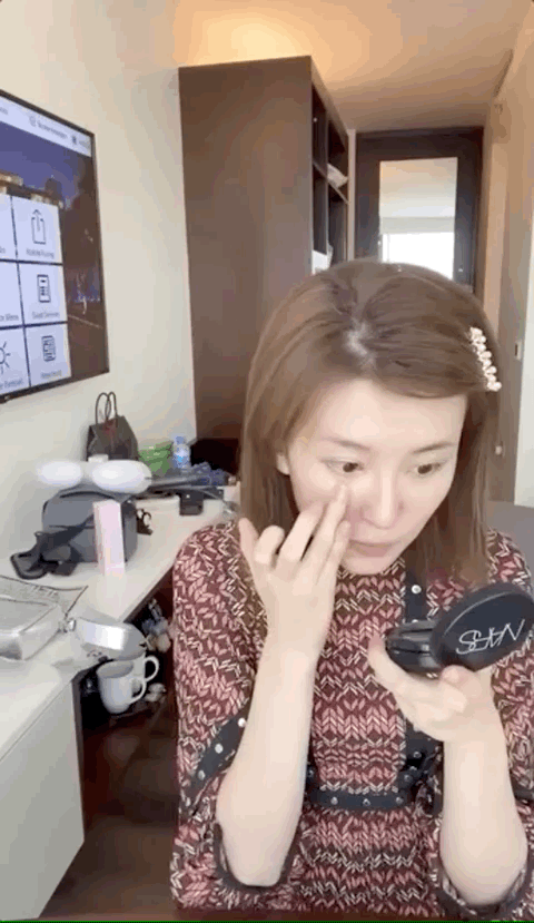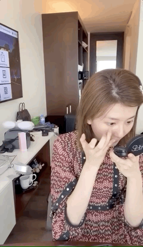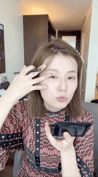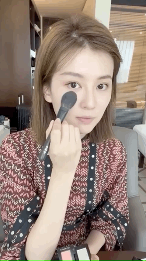 而除了前期在底妆的遮瑕之外,乔欣还有另一个独门诀窍来改善黑眼圈的问题,那就是用腮红!