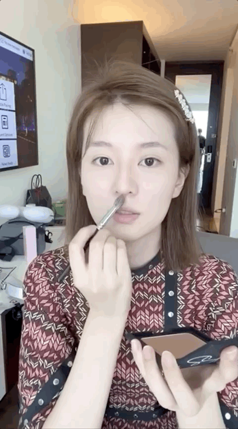 其实化妆时适当的给眉头到鼻侧的修容,不光会让鼻子看上去更立体,也会有加深眼窝的效果~