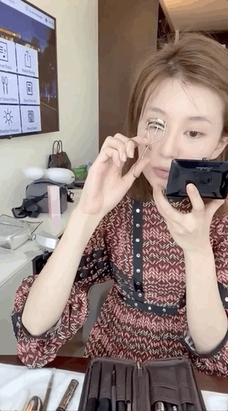 画好了眼影接下来就是夹睫毛的部分了,也是乔欣说自己的大眼妆容最牛的一个部分咯