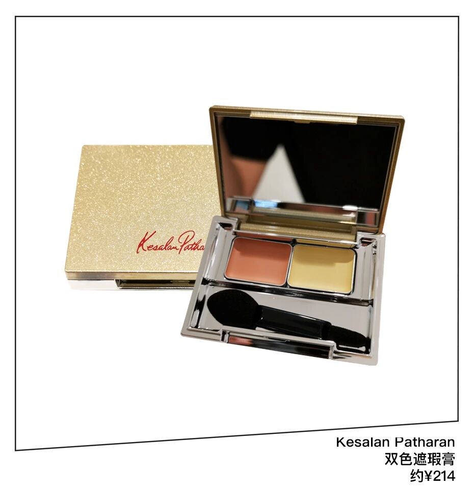 乔小包用的是Kesalan Patharan这款双色遮瑕膏,偏橘色调的一黄一粉橘色的遮瑕,特别适合来遮盖中和掉泛青色的黑眼圈