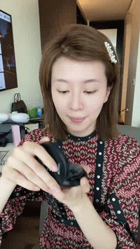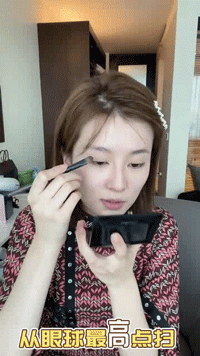 上底妆之前的乔欣先带来遮盖黑眼圈的小技巧:沿着自己眼睛下方有褶皱的地方遮盖,能更好的填充肌肤。