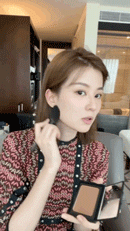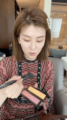 眼妆部分完成,乔老师还多给大家“延伸“了内容,在打腮红的时候,不要直直打在苹果肌上,这样笑起来的时候会有种“苹果肌下垂”的错觉,将腮红打在靠近眼下的位置,会显得更加可爱,还有遮黑眼圈的作用。
