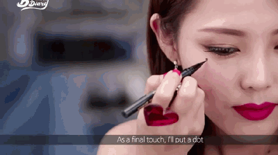 看了这么多“神仙”泪痣是不是跃跃欲试了?其实点泪痣并不难!PONY大神的教程就是用眼线笔或眼影,选择你中意的位置点一下,然后扫上一层散粉定妆,搞定!