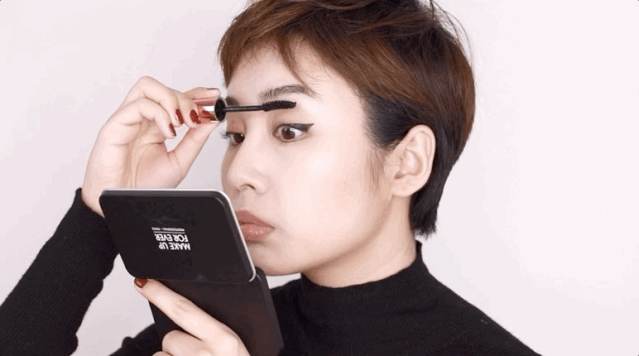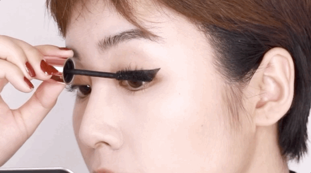 将睫毛夹出弧度后,先垂直刷,拉长睫毛,再从睫毛根部Z字型刷两遍,浓密度立刻UPUP!下睫毛也别忘记,它可以缩短中庭长度,是修饰脸型的秘密武器~