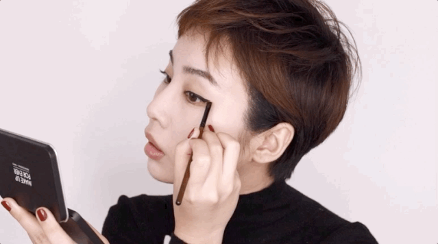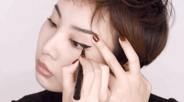 逆着画眼线的优点在于可以通过尖细的笔尖,一笔描画出精致的眼尾造型。