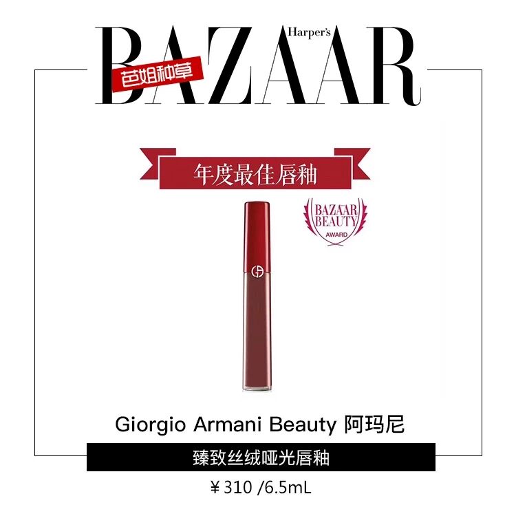 灵感源自高定奢华丝绒面料的阿玛尼“传奇红管”,全系列24色,总有一支满足你挑剔的唇色需求~