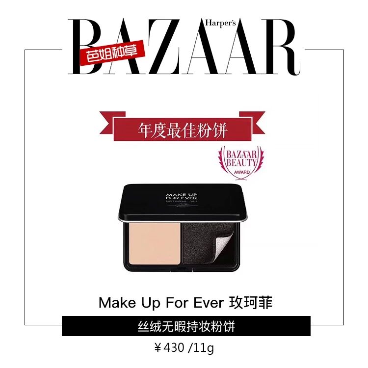 Make Up Forever这支丝绒无暇持妆粉饼绝对做到了让妆面一秒柔焦的美颜效果,12h的超长持妆力,还能够有效防汗防水,容易脱妆的你,请看过来~