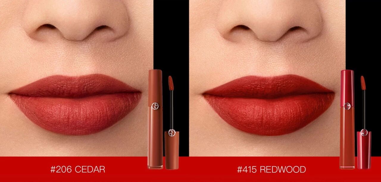 除了经典#400阿玛尼红,芭姐还推荐你们试试2019秋冬新色#206Cedar陶土红棕和#415RedWood赤木红棕,灵感源自温暖陶土与红衫木。