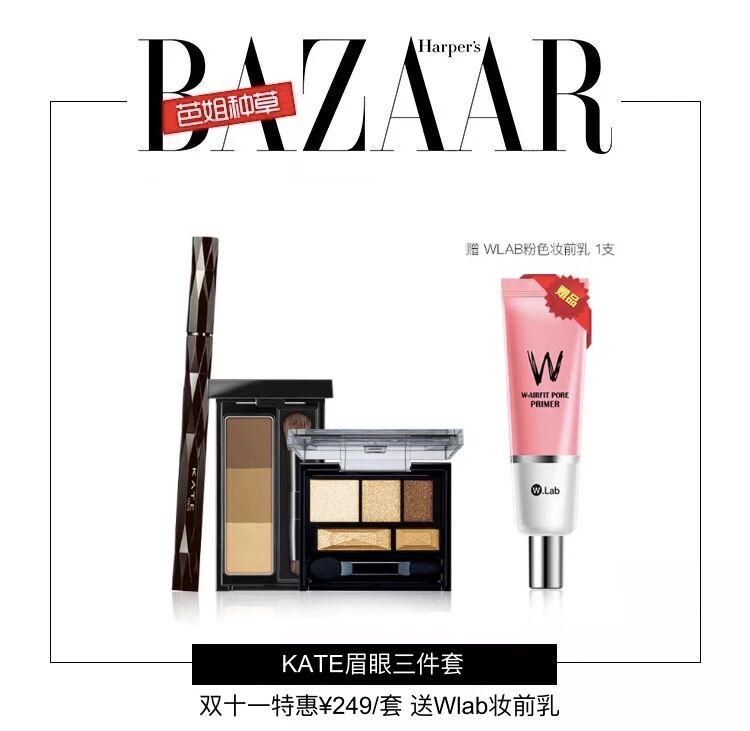 Kate品牌的人气王:三色眉粉+双效立体五色眼影盒+持久浓细眼线笔,一直都是彩妆控们人手必备的三样单品,有了它们即使新手也能画出轮廓立体的深邃大眼妆!