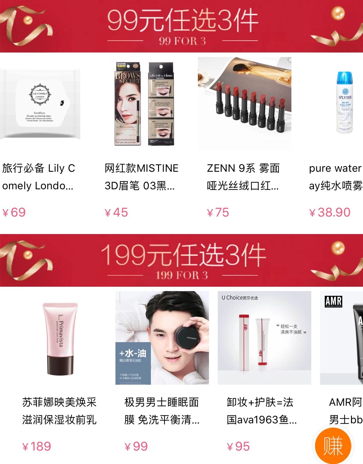 还有99元/199元任选三件专区,日常正价都超级火爆的高复购率的单品,现在三件任选只要199元,你说是不是在赚钱?