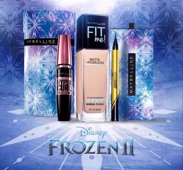 除了这次联名做的声势浩大的资生堂,美宝莲也联合《冰雪奇缘2》推出了限量的礼盒