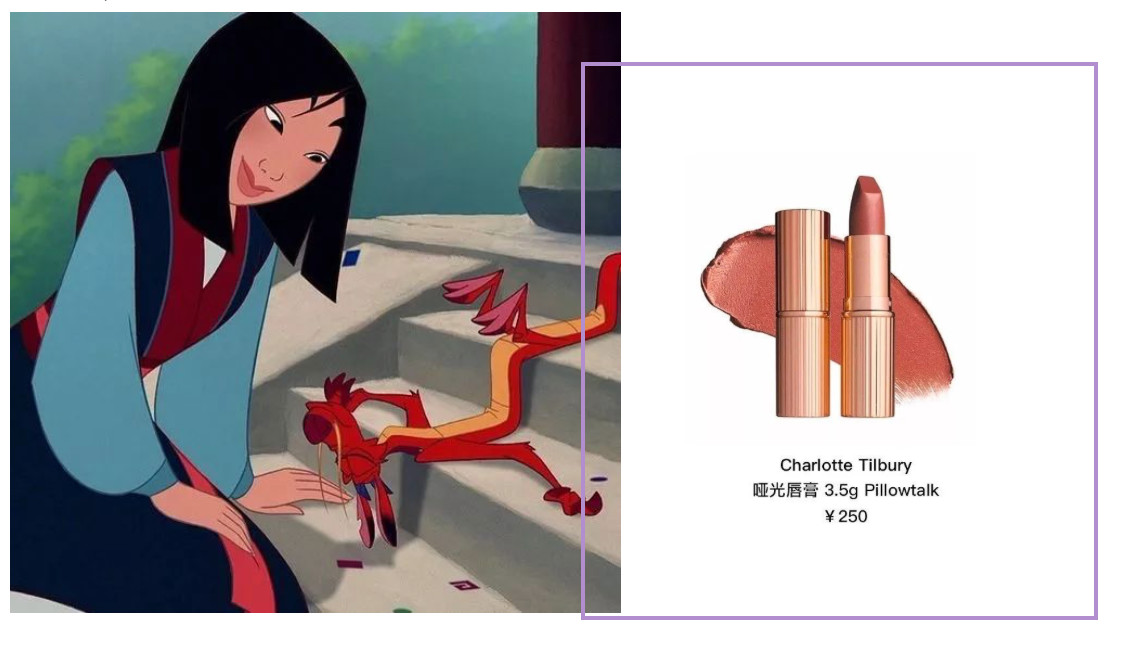 奶茶色的唇色搭配裸妆不论是在真人版还是原动画里都不会觉得突兀,一点都不粉嫩的妆容,怪不得让木兰即使在男人堆里也能蒙混过关了~