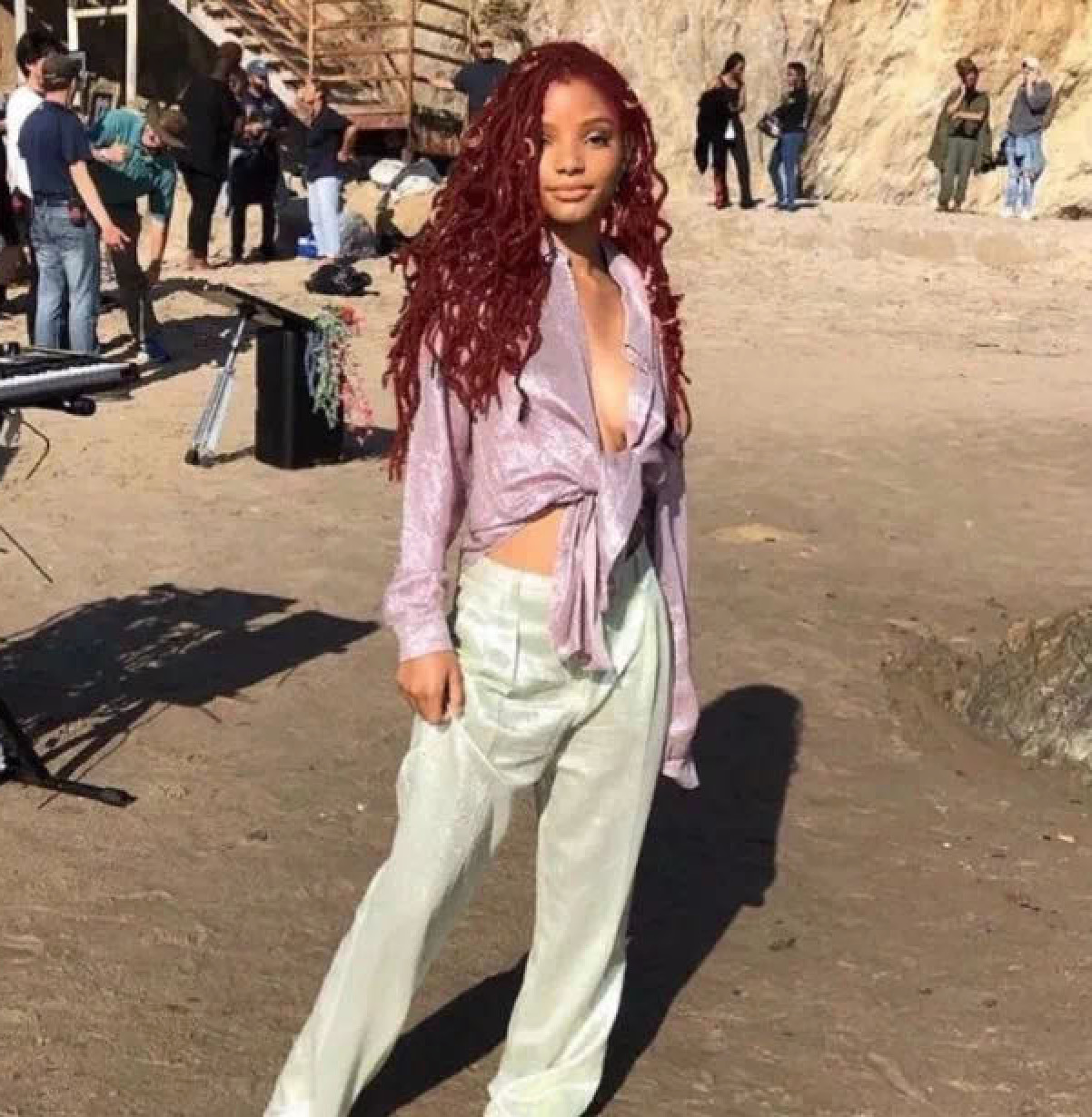 虽然真人版的《小美人鱼》选角打破了很多很多人对爱丽儿的幻想,但从路透照来看小美人鱼标志性的红色头发到是没有变哦!