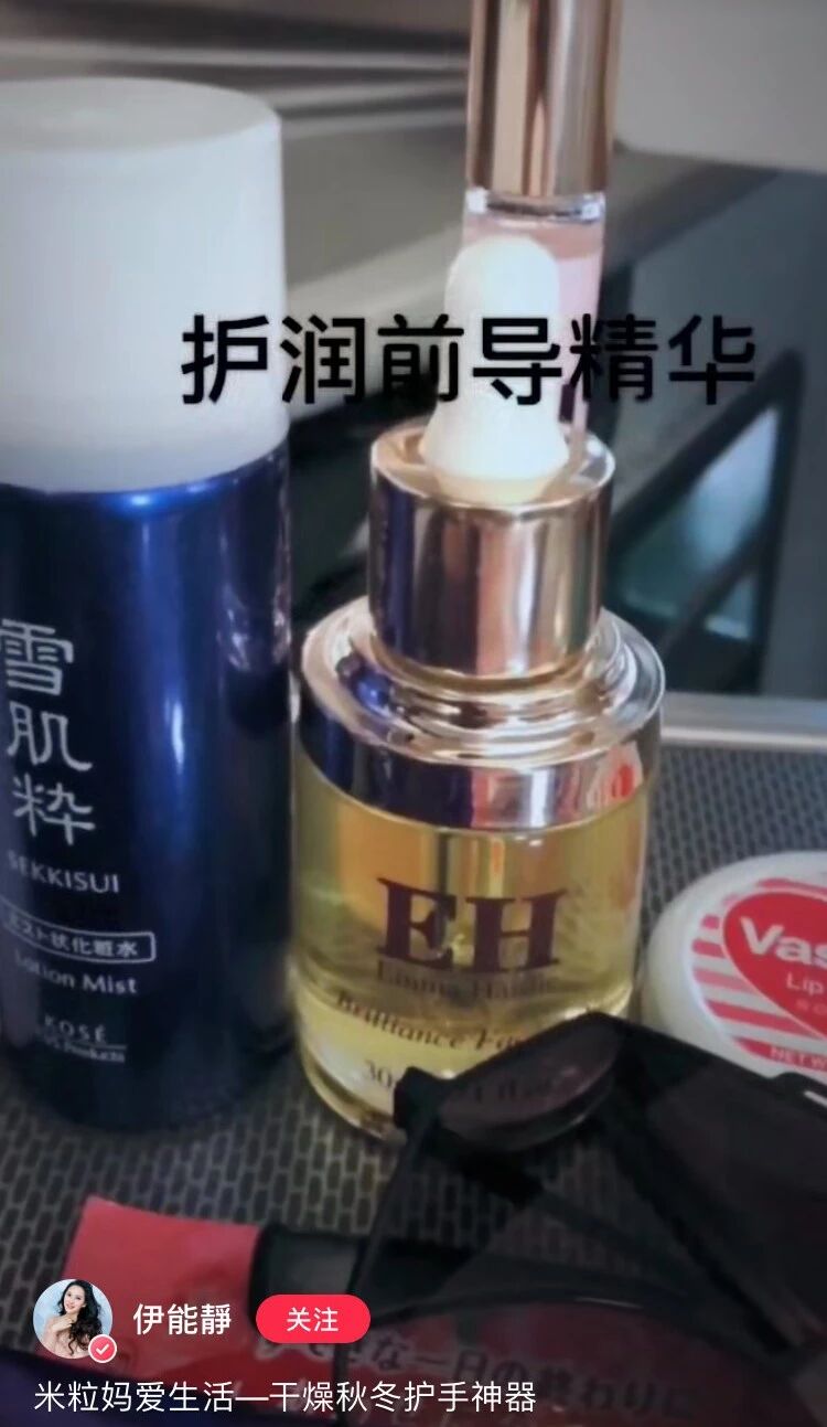 除了小KK使用的乳液类精华,机上护肤的时候我们也可以选择滋润度更好的精华油类产品