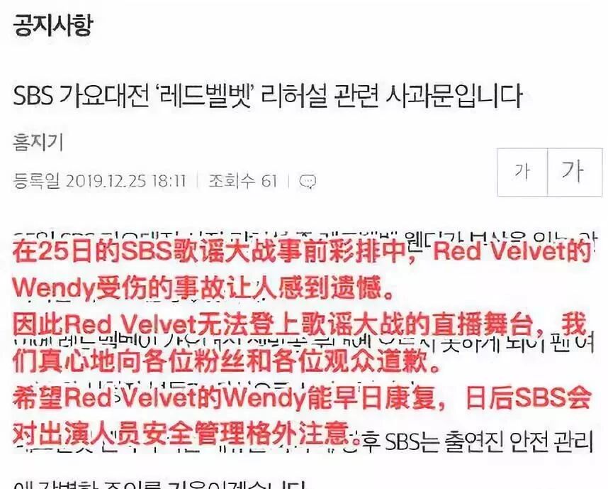 唯一遗憾的是,在昨天的歌谣大战彩排中Wendy 跌落舞台受了伤,无法和成员们完成接下来的舞台