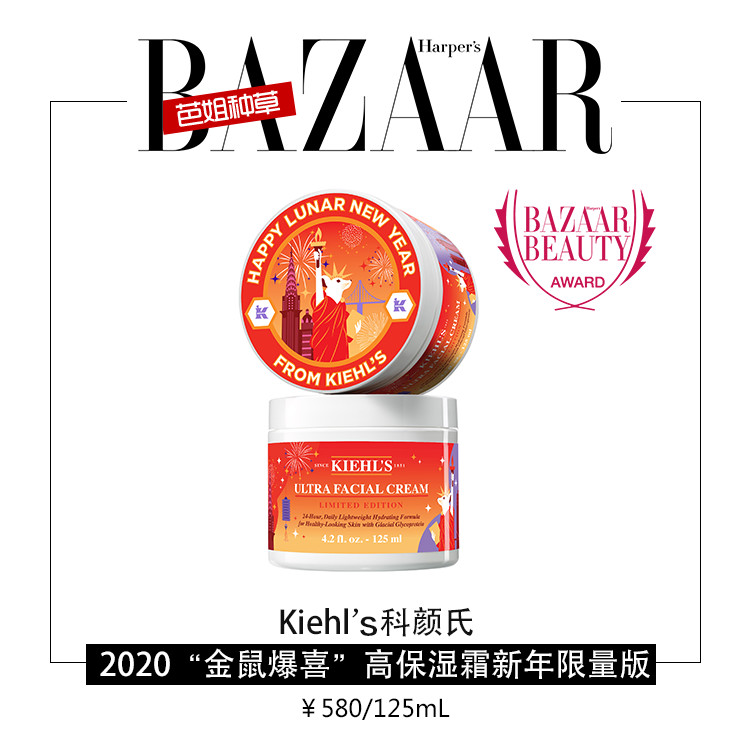 Kiehl’s科颜氏高保湿霜全新升级,披上 “金鼠爆喜”限量系列的火红外壳,保湿力依旧稳定在线,使肌肤在水润健康的同时,脸部呈现饱满Q弹的状态,简单安全的成分让护肤也很安心,简直就是我的秋冬必备法宝。