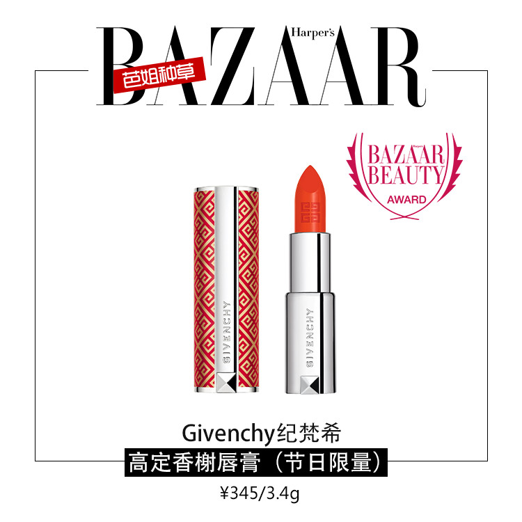 当中国红邂逅纪梵希家变身金色的经典Logo,仿佛祥云图腾一般,开盖即可开启新年鸿运。半哑光质地,上唇柔润触感,为新春增添一抹元气亮橘色,闪耀着细腻光泽让人无法移开视线,超强锁色待机力,一刻不停散发当红魅力!